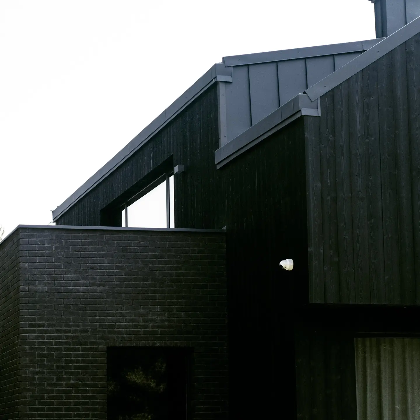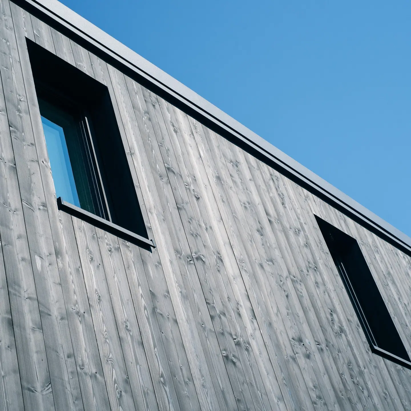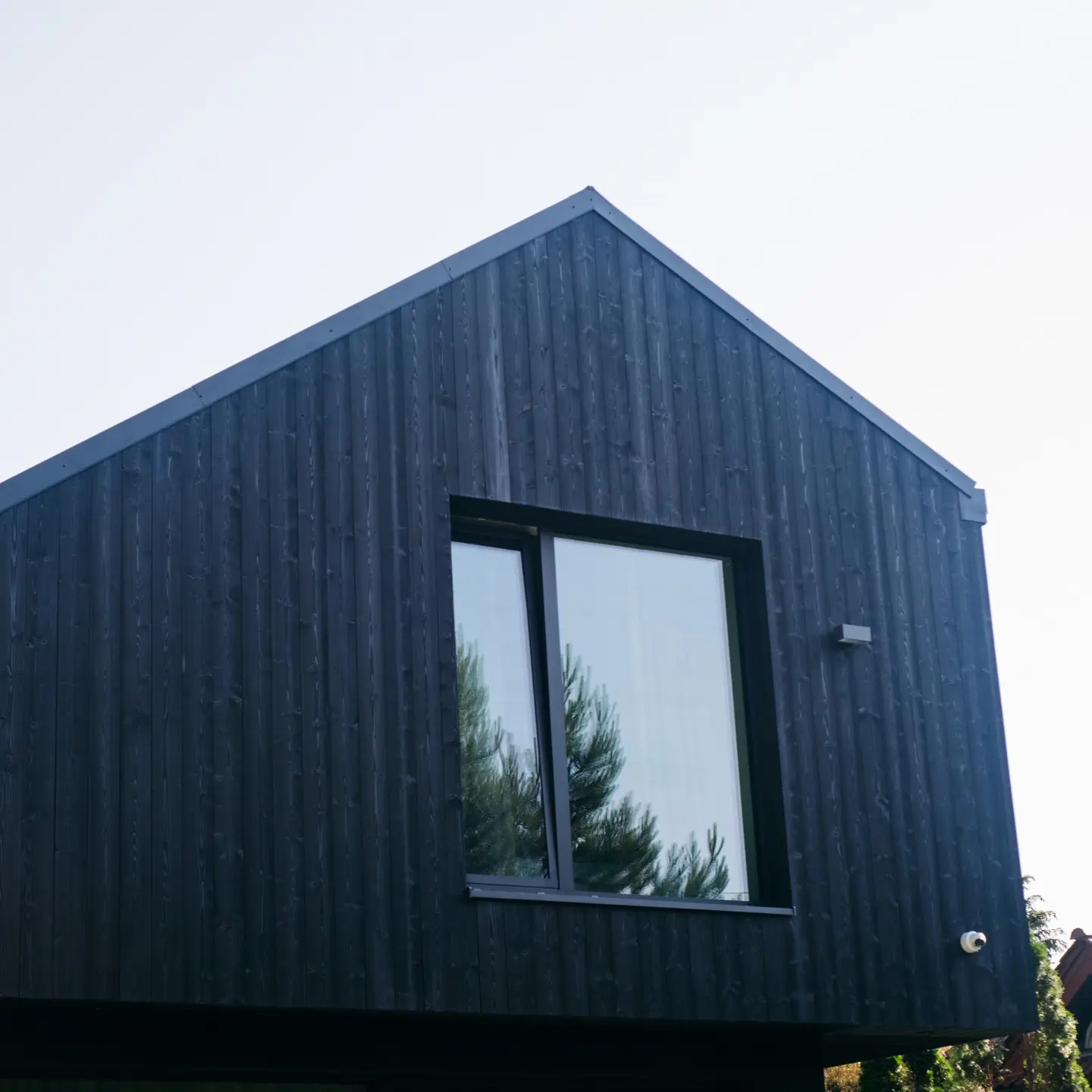 Lakierowanie strukturalne COATEX 7T21 doskonale współgra z elewacją z palonego drewna.