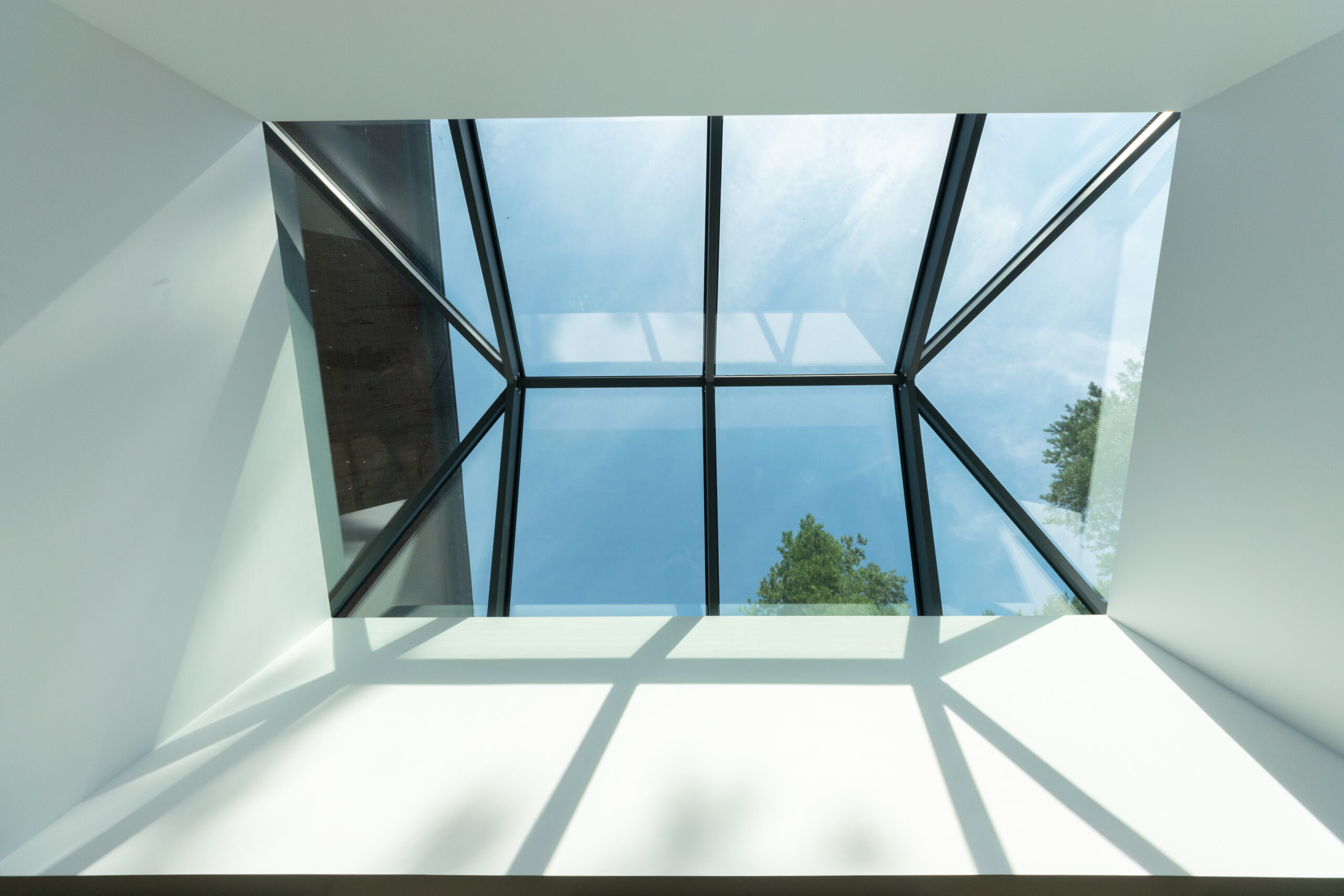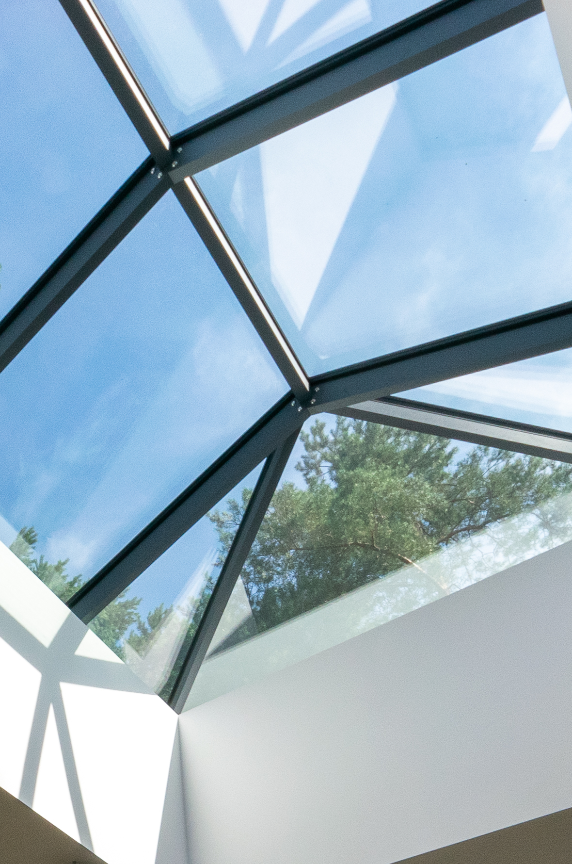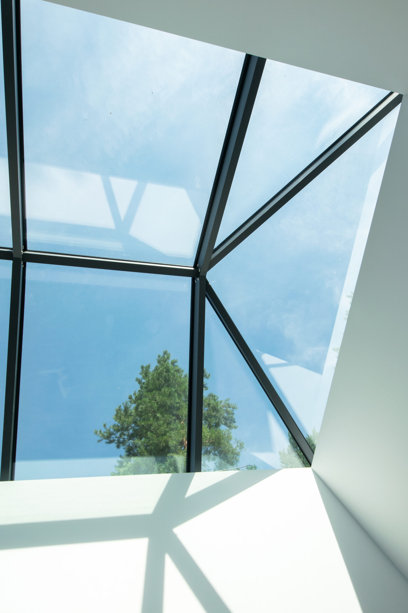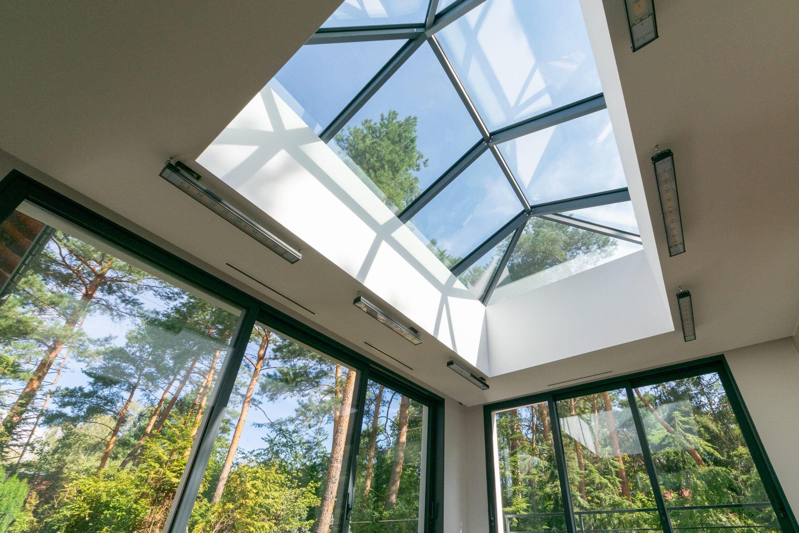 Świetlik dachowy ważący ponad 1200kg, o wymiarach 3,5 x 5m, został wykonany w systemie CW50 od #Reynaers.